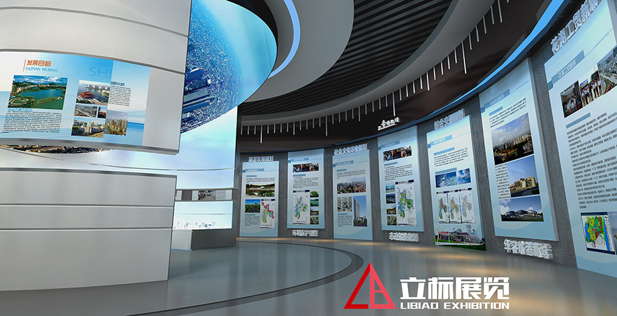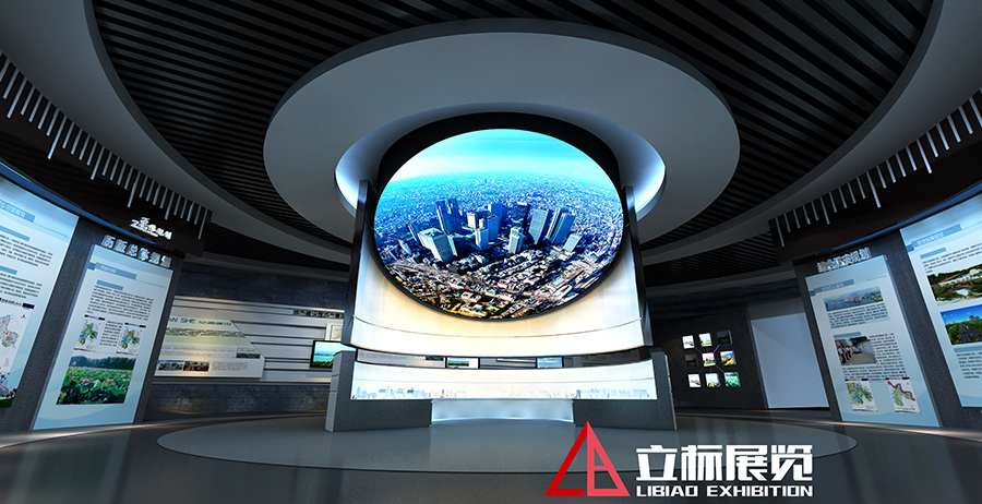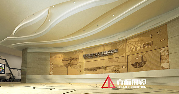 序廳設(shè)計(jì)簡潔高雅而不失恢宏大氣,天花以婉轉(zhuǎn)流美的曲線勾勒出奔騰的長江意象,與地板上的寫意地圖上下呼應(yīng),讓觀眾在俯仰之間感受鄂州通江達(dá)海的優(yōu)勢區(qū)位和襟江帶湖的水韻氣質(zhì)。迎面的主題形象墻上,連綿的曲線猶如長江之波,溫潤著這座秀美的城市。波浪之上,厚重的浮雕鋪展開以“五個鄂州”為主題的壯美畫卷,山水掩映間,一座宜居宜業(yè)的組群式大城市正呼之欲出。