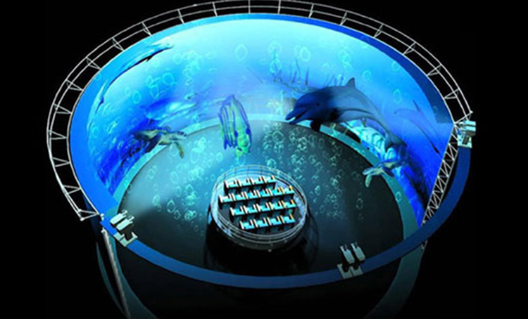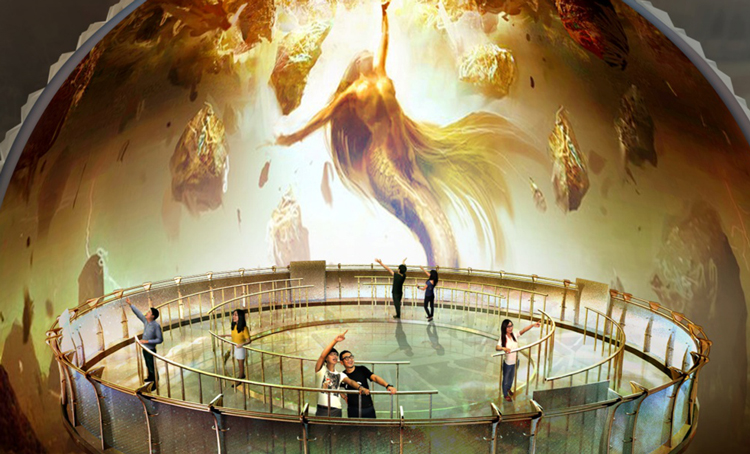 環(huán)幕的投影幕弧度為360度全封閉無縫拼接的影院。一般我們會(huì)在圓形空間中央設(shè)置環(huán)形看臺(tái),這樣參觀者可以從任何角度都可欣賞環(huán)幕影片,非常有代入感,仿佛人們都融進(jìn)影片的場(chǎng)景之中。環(huán)幕的沉浸感是否強(qiáng)烈關(guān)鍵在于數(shù)字影片的創(chuàng)意和鏡頭運(yùn)動(dòng)產(chǎn)生的畫面代入感和立體感的強(qiáng)弱。往往適合表現(xiàn)具有宏觀大場(chǎng)景,多場(chǎng)景的內(nèi)容。