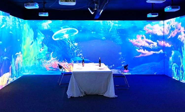 CAVE是一種基于投影的沉浸式虛擬現(xiàn)實(shí)顯示系統(tǒng),其特點(diǎn)是:分辨率高,沉浸感強(qiáng),交互性好。CAVE沉浸式虛擬現(xiàn)實(shí)影院是由3個(gè)以上的投影墻面組成的高度沉浸的虛擬演示環(huán)境,配合三維技術(shù),可以讓參觀者身處一個(gè)三維立體的的沉浸空間中,給參觀者帶來具有震撼的視覺效果,身臨其境的沉浸感受。它適用于任何具有沉浸感需求的虛擬仿真應(yīng)用領(lǐng)域,不同類型的展廳展館。比如虛擬設(shè)計(jì)與制造、虛擬生物醫(yī)學(xué)工程、軍事模擬指揮、地震及消防演練仿真、虛擬演示、模擬訓(xùn)練、建筑視景與城市規(guī)劃等。
