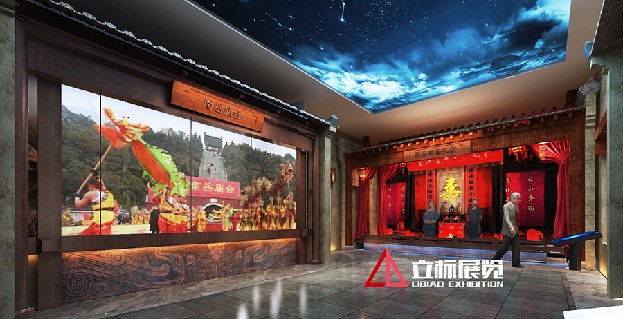 在展館設(shè)計(jì)中,我們以多方的廣闊視角,以“高山仰止 壽岳衡山”為設(shè)計(jì)概念主題,以奧運(yùn)會(huì)、世博會(huì)為標(biāo)志的現(xiàn)代展覽語法為設(shè)計(jì)藍(lán)本,原創(chuàng)出從空間語匯的獨(dú)特到裝飾材料的精致展陳形式來,打造出“典雅、厚重、前沿、科技”的展示空間氛圍,構(gòu)建出壽文化取得的成果以及對南岳壽文化傳播的決心。