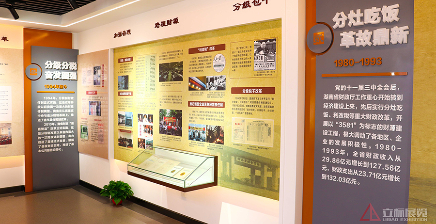 湖南省財政廳歷史陳列館是一個湖南省財政歷史的象征和文化建設的重要標志,是展示歷史、文化傳承的重要窗口。 展館主要以現(xiàn)代電子觸摸屏與傳統(tǒng)圖文展板相結合,配以部分有歷史感的實物,回顧省財政廳的風雨歷程,展示財政工作對湖南經(jīng)濟社會發(fā)展所發(fā)揮的宏觀調(diào)控、政策保障和資金支持作用以及財稅文化的深厚底蘊。綜合采用實物、圖片、文字、觸摸屏手段等方式展現(xiàn),按照“內(nèi)容實事求是、文字準確精煉、設計前瞻新穎、布展美觀大方、通盤留有余地”思路進行。